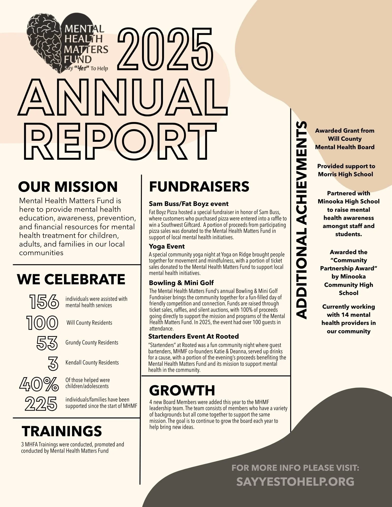 The Mental Health Matters Fund was created to help individuals in our community say "YES" to help.
